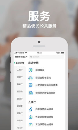 服务:提供个人服务、企业服务、部门服务,页面导航一目了然,操作更方便