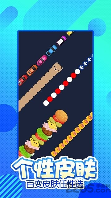 3、百变皮肤任性选:数十种个性皮肤随心搭配,从呆萌卡通到炫酷机甲应有尽有,打造专属贪吃蛇形象。
