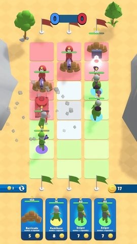 3、游戏中集结不同的小兵组建队伍,来场1v1之战,完成争夺任务。通过军团系统可以培养专属的部队组合,解锁特殊羁绊加成。随着段位提升,您将解锁更高级的战术卡牌和装饰性旗帜皮肤。