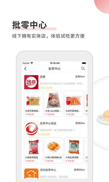 【批发购物功能】支持用户在线批发各类食品及日用品,平台汇集海量优质商品,价格透明实惠,采购流程简单便捷,大幅提升采购效率;