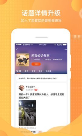 智农通专为农业人民,特别是养猪业的养猪户开发的牲畜养殖信息技术软件。不仅支持养猪知识,还支持鸡蛋、水产品、田地、橙子、物流等。你可以从你目前需要的农业产业中学习。