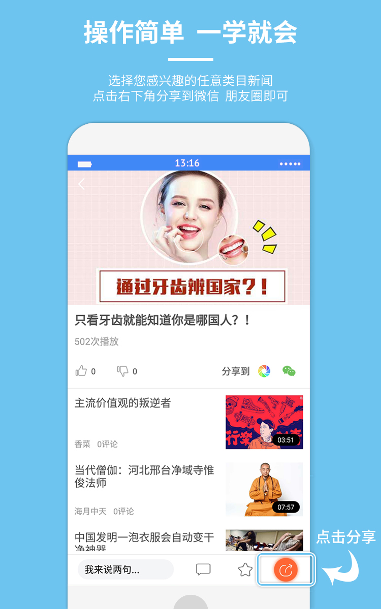 2、操作简单,易上手:选择任意内容,分享到微信,朋友圈即可;整个分享流程只需3步,即使是初次使用的用户也能快速掌握,真正做到一键分享、轻松赚钱。