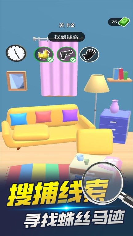 2、游戏场景设计极具多样性,从阴暗的地下室到豪华的别墅,每个场景都融入了独特的元素和细节。玩家需要发挥敏锐的观察力,在不同的环境中发现隐藏的证据线索,这些线索往往决定着案件的走向。