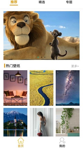 --支持多种风格挑选,设有精选专题推荐,所有壁纸均为高清画质,支持自由定制