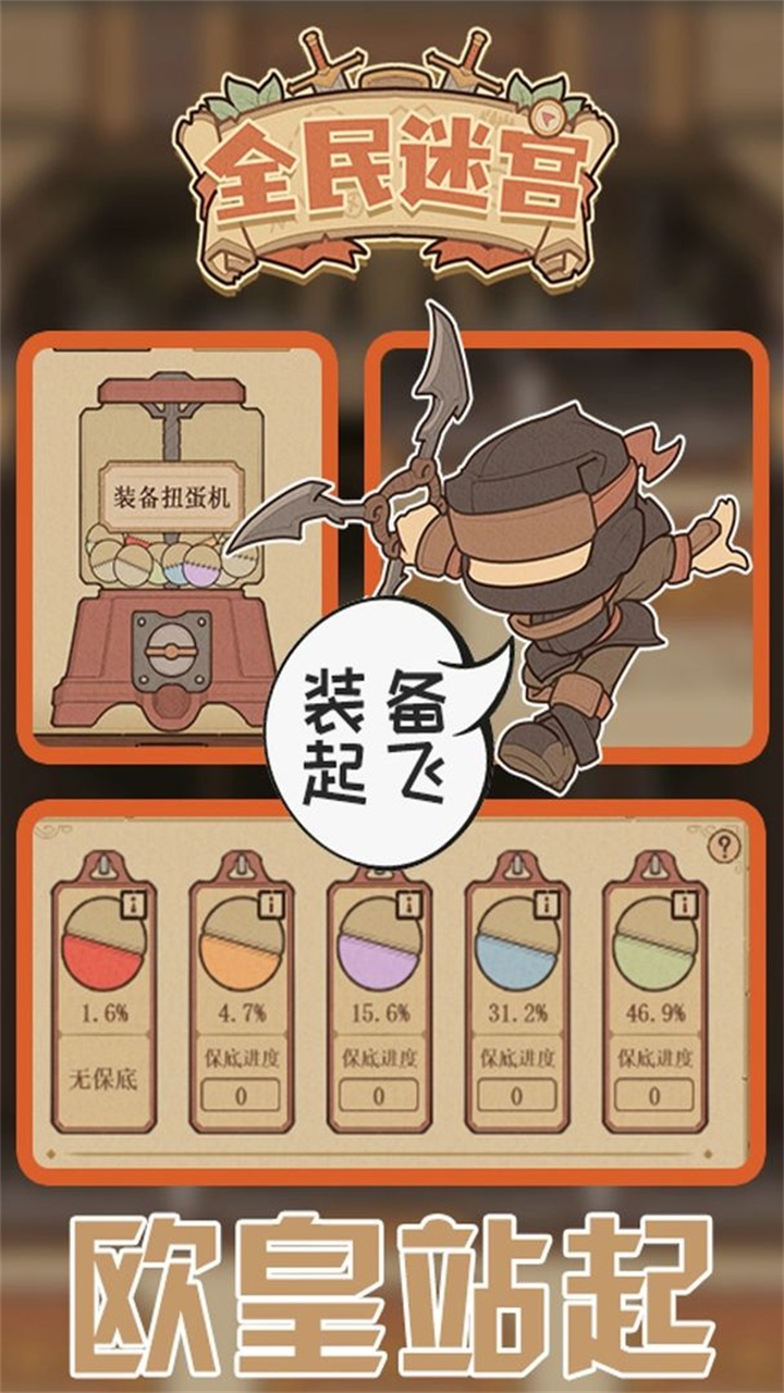 《全民迷宫》是一款融合了放置挂机与策略冒险元素的休闲手游。在这款游戏中,玩家将组建一支由不同职业角色组成的冒险小队,通过合理的阵容搭配和角色培养,带领队伍深入神秘迷宫探索宝藏。游戏采用轻松简单的操作方式,让玩家在挂机收益的同时也能体验到策略搭配的乐趣。随着角色等级的提升和队伍的不断完善,玩家可以解锁更多迷宫区域,挑战更强大的敌人,获取丰厚的奖励。独特的复古画风与冒险氛围相结合,为玩家带来别具一格的游戏体验。