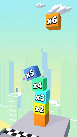 通过从左到右移动积木来建造最高的塔,在关卡中用你自己颜色的积木粉碎相同的积木。