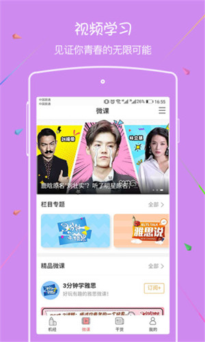 {视频学习}超过500小时高清课程视频,包含名师精讲、场景模拟、技巧解析等丰富内容,独创的"雅思9分"系列课程已帮助数千考生获得理想成绩;