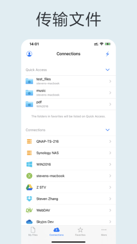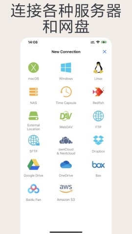 通过SMB协议直接连接PC、Mac和NAS上的共享文件夹,完美支撑NFS、WebDAV、FTP和SFTP等服务。它也无缝连接云存储服务,包括百度网盘、AmazonS3、Dropbox、OneDrive、GoogleDrive和Box,让您随时访问USB驱动器和SD卡。特别值得一提的是,其批量传输功能可同时处理上百个文件,传输速度比普通方式快3倍以上。