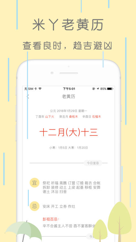 完整的农历查询功能让你不错过任何一个传统节日,详细的每日宜忌指南为重要日子提供参考。更有属相相冲提醒、吉神方位查询、灵签占卜等传统文化功能,让现代科技与传统智慧完美结合。