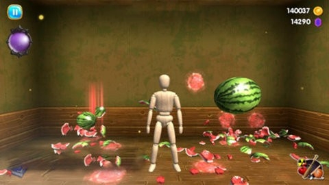 3、游戏中各种道具的破碎效果极其逼真,特别是西瓜等物品的碎裂过程,能带来震撼的视觉冲击。这些细节设计让每一次打击都充满爽快感。
