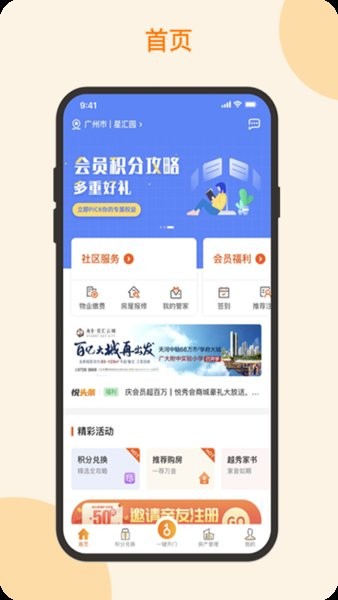 越秀地产悦秀会是越秀地产授权主体广州市城市建设开发有限公司及其属下项目公司打造的专属会员平台。作为越秀地产的尊贵客户,您将在这里享受到全方位的会员权益和服务。平台不仅提供基础的物业服务,还整合了购房优惠、积分兑换、社区活动等多元化功能,让您的生活更加便捷舒适。通过持续优化升级,悦秀会致力于为用户打造更智能、更贴心的数字化生活体验。