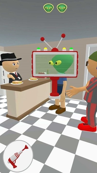 3、找到外星人只有两种操作方式,一种是用扫描仪检测外星人,另一种就是激光枪了。扫描仪可以显示物品的真实形态,而激光枪则可以直接标记可疑目标,两种工具各有优劣,需要玩家根据实际情况灵活运用。