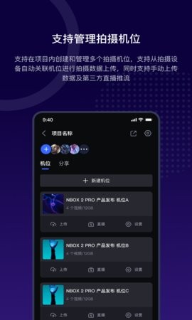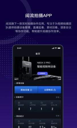 阅流拍摄支持连接并管理市面上主流的拍摄设备,包括nbox专业拍摄设备、GoPro运动相机、大疆航拍器、无线图传设备等各类专业器材。通过智能识别技术,软件可自动匹配设备参数,实现多机位同步控制,满足从单机位到大型多机位拍摄的各种复杂场景需求。
