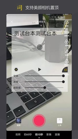 台词宝提词器是一款专业的短视频录制自拍提词器,它采用先进的屏幕悬浮技术,支持透视显示功能,让用户在拍摄时能够同时看到台词和拍摄画面。应用内置了原生相机和美颜相机两种拍摄模式,支持1080P超高清画质输出,确保视频质量达到专业水准。无论是录制短视频、进行直播还是准备重要演讲,这款提词器都能为您提供完美的辅助支持。