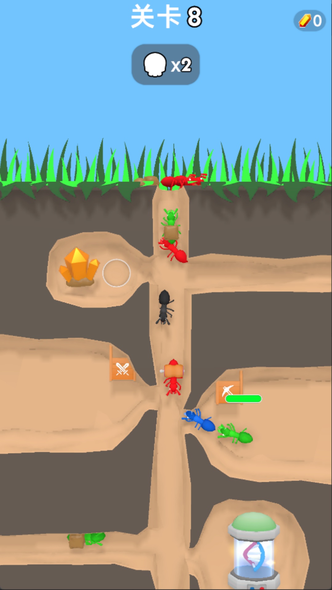 随着游戏的进行,你的蚂蚁将获得进化机会。通过积累经验值,可以解锁特殊能力,如更快的挖掘速度、更强的负重能力或对特定毒素的抗性。巢穴本身也能进行科技升级,从基础的土质加固到先进的菌类培养技术。游戏提供了多样化的进化树,让你可以根据自己的游戏风格定制蚁群特性。某些特殊进化需要完成特定挑战才能解锁,为游戏增添了探索和发现的乐趣。一个充分进化的蚁群将能够应对任何地下世界的挑战,甚至改变整个生态系统。
