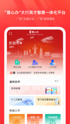 智慧服务生态:作为"晋心办"太行英才智慧一体化平台的重要组成部分,通过"一码通"服务模式,实现长治地区各类人才服务的无缝衔接和便捷享受。