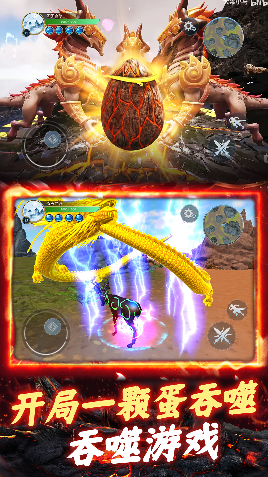 游戏操作相对简单,主要通过方向键控制移动,攻击键进行吞噬。玩家需要不断击败并吞噬其他生物来获取经验值,每达到10级就会迎来一次进化。特别值得注意的是,30级时会解锁第一个技能,40级时技能会再次升级。游戏过程中会随机刷新神蛋和巨龙,前者能提供大量经验,后者则是致命的威胁。建议优先提升"经验获取"和"召唤神蛋"这两个功能,它们能显著加快成长速度。挑战BOSS是通关的关键,击败四个主要BOSS后即可完成主线剧情。通关后虽然可以解锁新的异兽蛋,但玩法模式基本保持不变。