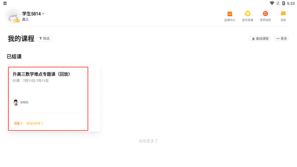 在我的课程页面可以查看所有已报名课程,点击即可开始学习。