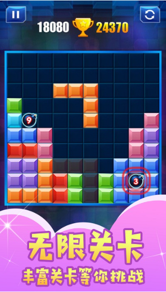 思维闪电战拥有独特的操作机制,玩家可以通过拖动手指精准调整方块的下落位置,实现各种高难度的消除组合。游戏特别设计了炸弹道具系统,当玩家陷入困境时,可以使用炸弹道具瞬间清除大片方块,化险为夷。每个关卡都经过精心设计,带来截然不同的消除体验,从简单的入门关卡到极具挑战性的高级关卡,游戏难度循序渐进,让玩家在享受消除乐趣的同时不断提升自己的技巧。