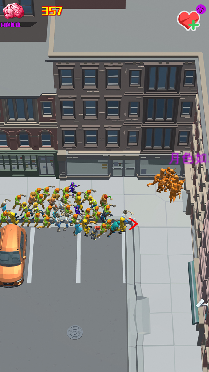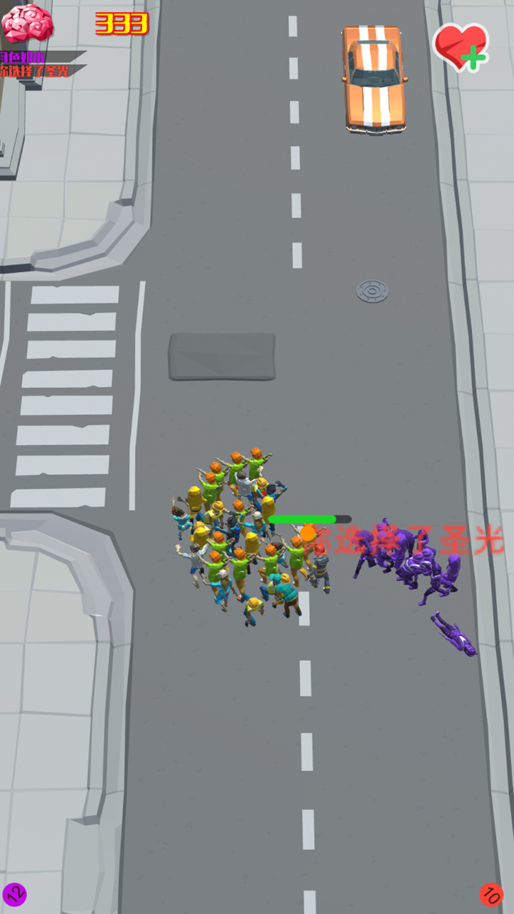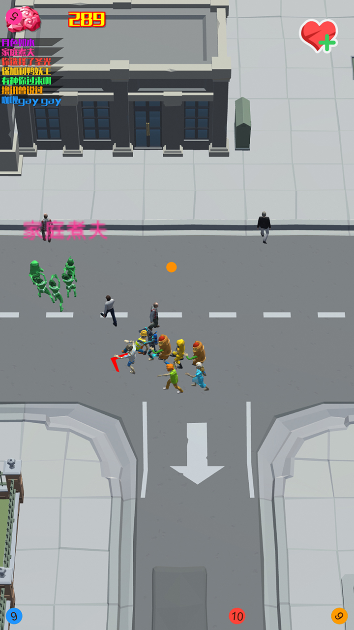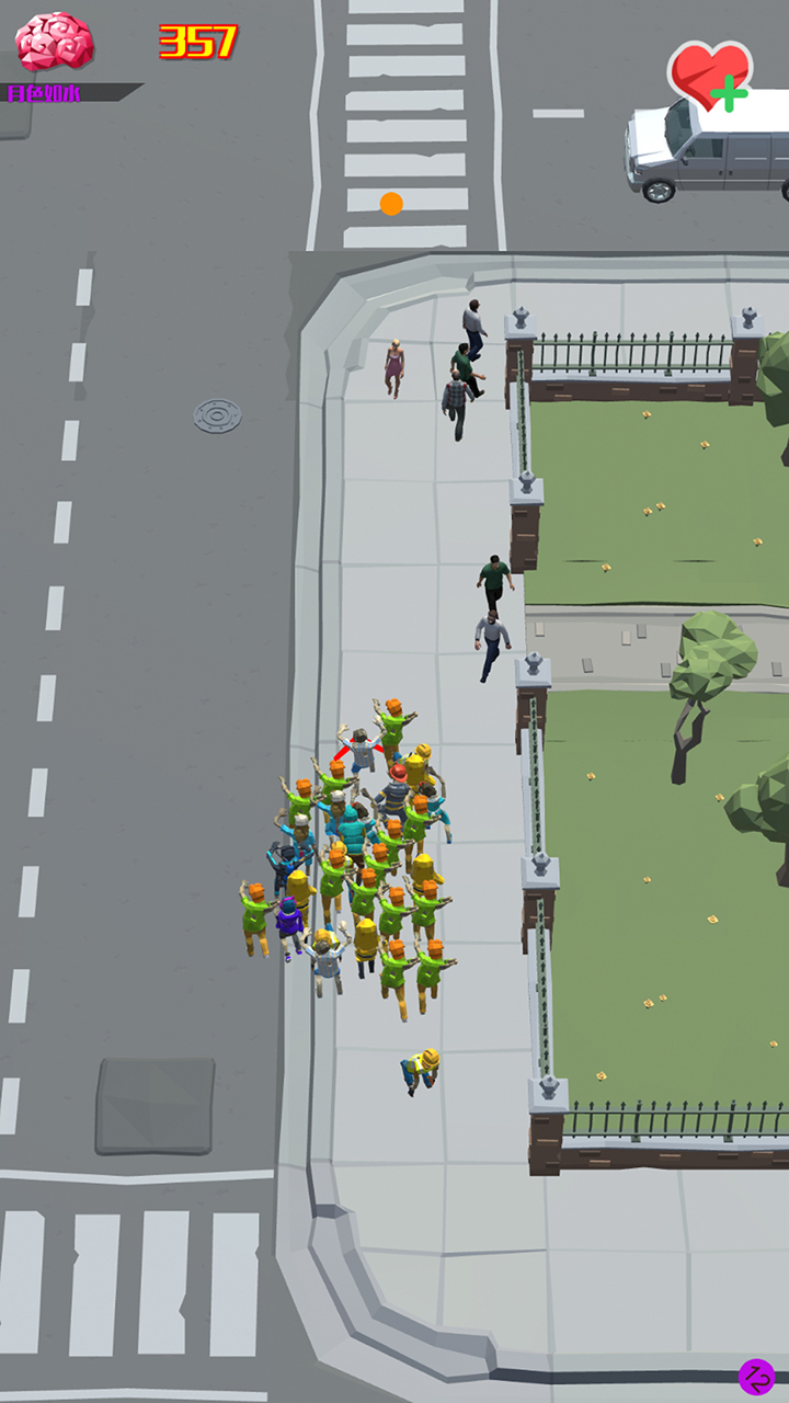 游戏采用双摇杆操控系统,左手控制队伍移动方向,右手可释放加速冲刺或分散指令。核心玩法围绕"滚雪球效应"设计,初始阶段需谨慎避开大规模敌对阵营,优先吸收地图边缘的零散人类。当队伍超过50人时激活"狂暴模式",移动速度提升20%并附带击退效果。独创的"联盟系统"支持临时结盟对抗霸主队伍,但联盟成员间仍存在背刺风险。每局限时8分钟的设计迫使玩家不断做出抉择,是冒险突袭敌方大本营,还是稳扎稳打蚕食周边区域,都将直接影响最终排名。