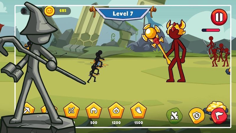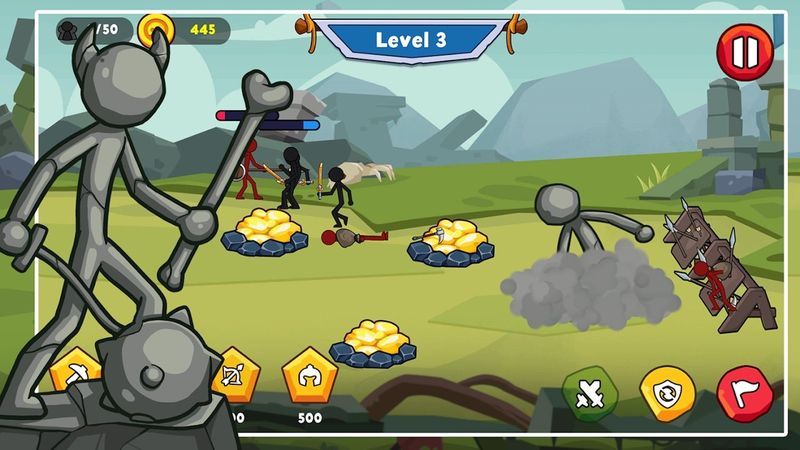 3.炫酷技能:火柴人士兵可以释放各种华丽的战斗技能,从火焰箭雨到雷霆重击,每个技能都配有震撼的视觉特效,让战斗过程充满视觉享受。