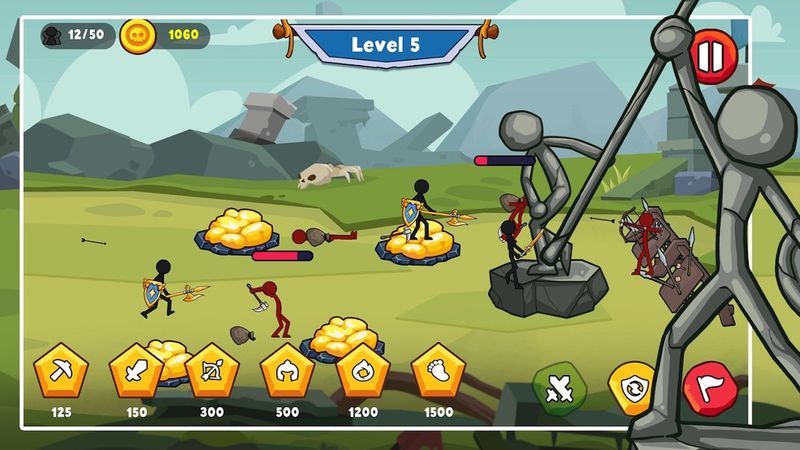 4.激烈战斗:游戏支持大规模军团对战,数百名火柴人战士同屏厮杀,配合逼真的物理碰撞和打击反馈,营造出热血沸腾的战场氛围。