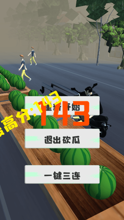玩家需要驾驶摩托车快速切西瓜,但要注意避开路上的行人和障碍物。游戏采用竖屏操作方式,长按屏幕为摩托车蓄力,松开即可骑行切瓜。连续切中西瓜会积累连击数,达到一定数量还能触发酷炫的特殊技能。游戏结束时,切中的西瓜数量将转化为最终得分。随着游戏进行,难度会逐渐提升,考验玩家的反应能力和操作技巧。多种道具随机出现,合理利用它们能帮助你获得更高分数。
