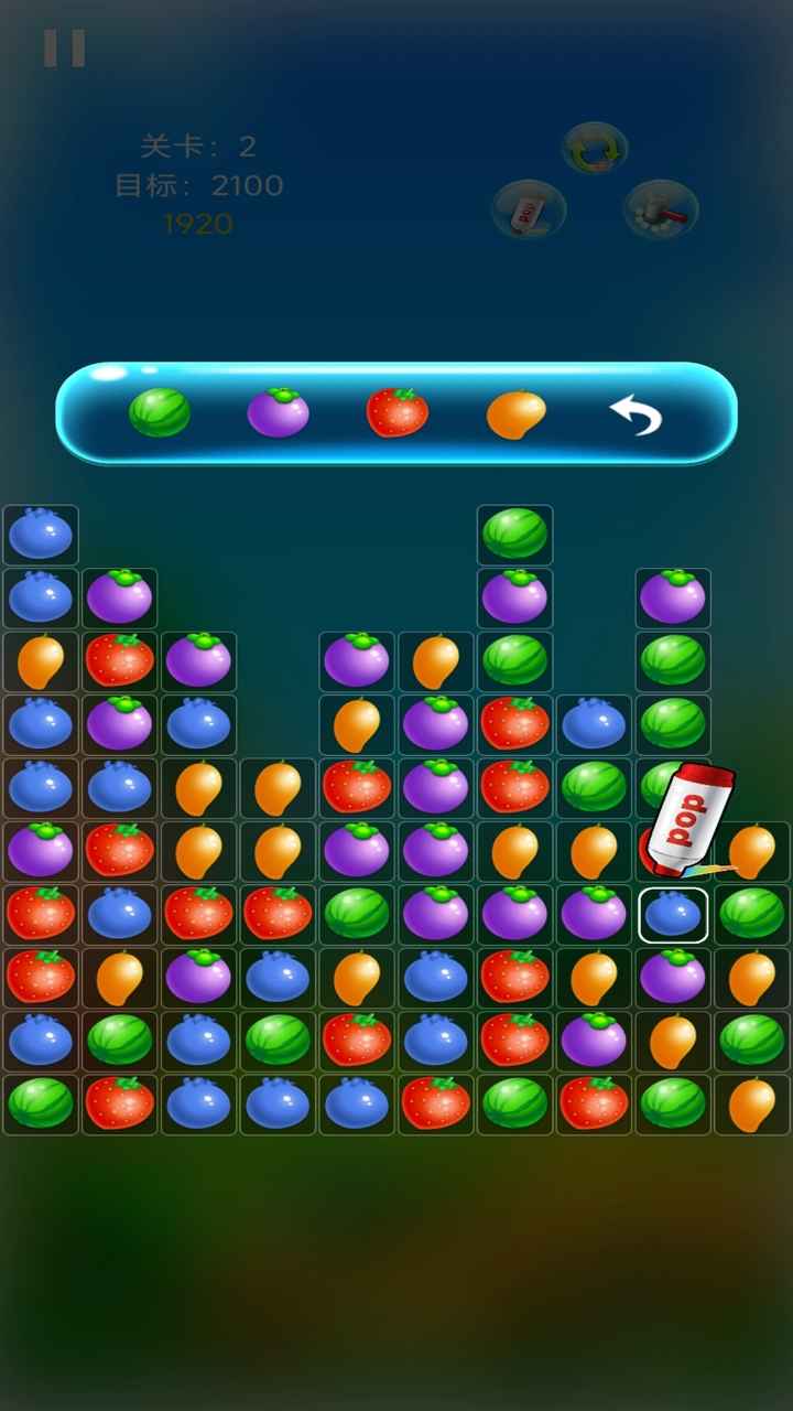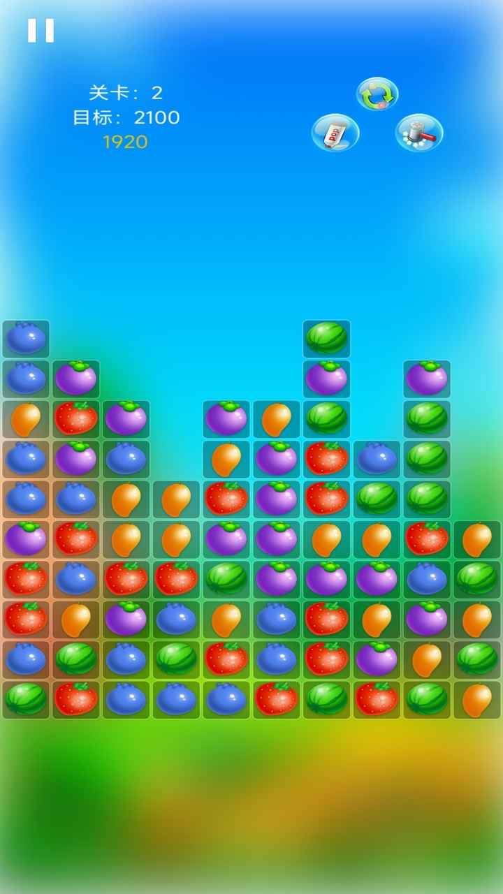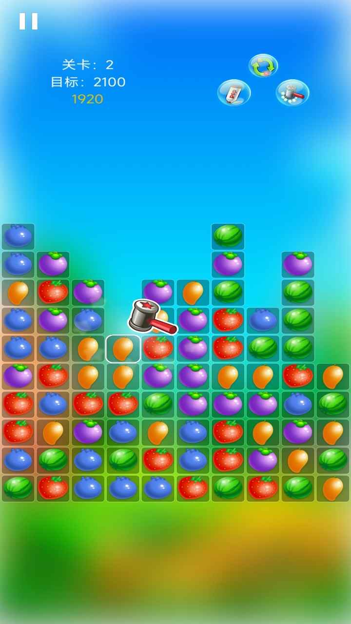4、游戏采用清新明快的水果主题,包含草莓、西瓜、橙子等多种水果元素,搭配欢快的背景音乐,营造出轻松愉悦的游戏氛围。
