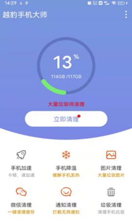 越豹手机大师APP可以帮助用户选择和处理手机中的各种大文件信息,以及各种无用的通知拦截相关功能,这些也可以在软件中完成。