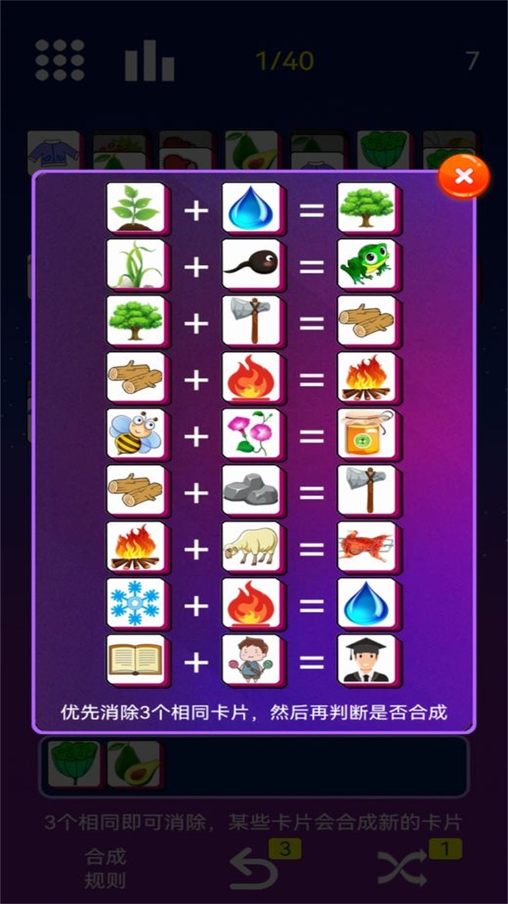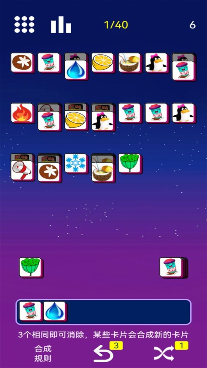游戏采用创新的多层消除机制,每关都由三层或以上的方块组成。玩家需要从最上层开始点击方块,将其收集到下方的收集框中。当三个相同图案的方块相遇时就会消除,不同图案则会保留在收集框中等待后续匹配。游戏还贴心地设计了自动排列功能,当收集到两个相同图案时,它们会自动相邻排列,方便玩家观察和规划下一步操作。此外,由于方块是部分重叠的,玩家可以通过露出的边角来判断下方方块的图案,这种设计既增加了游戏的策略性,又让消除过程更加有趣。
