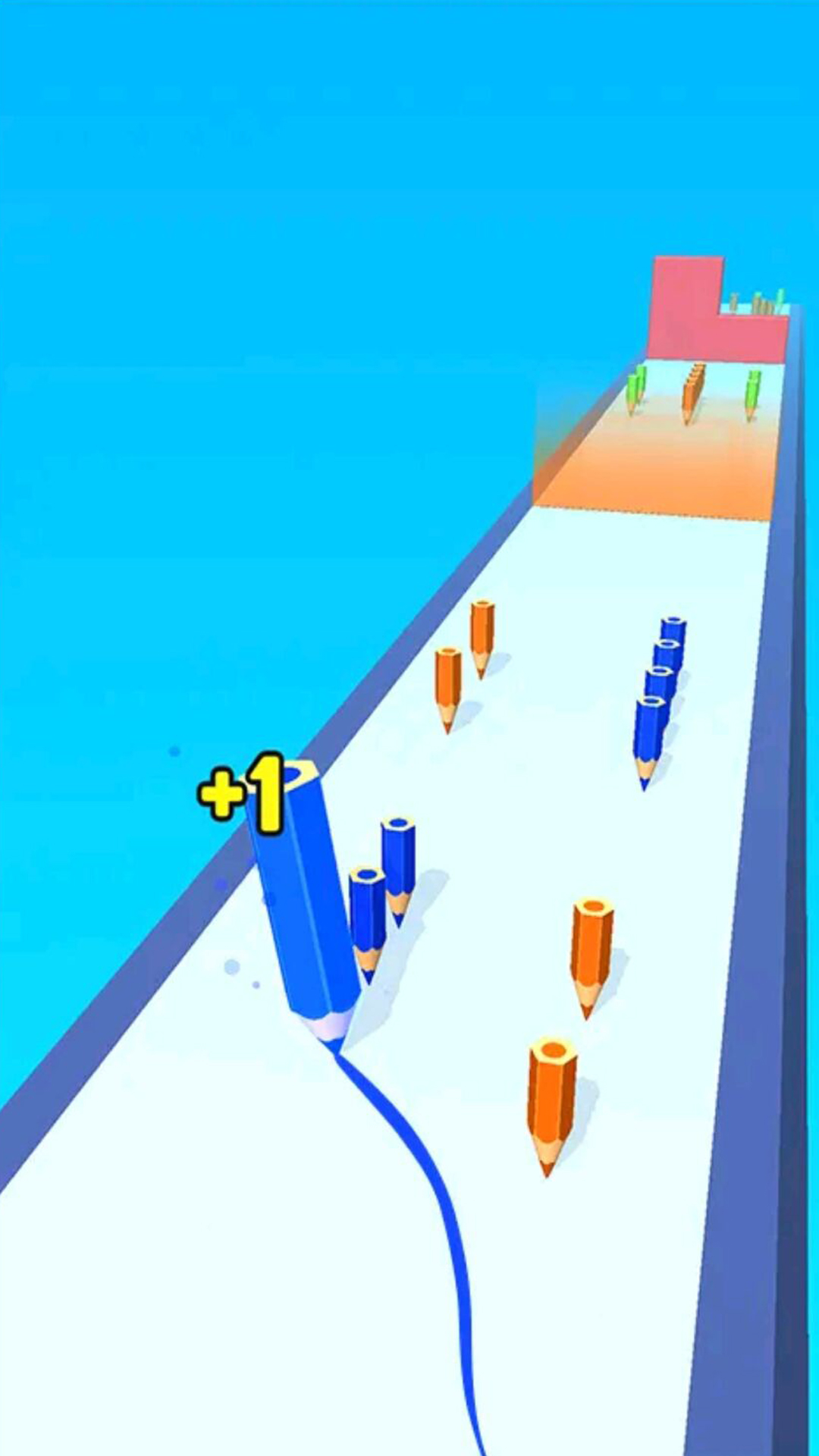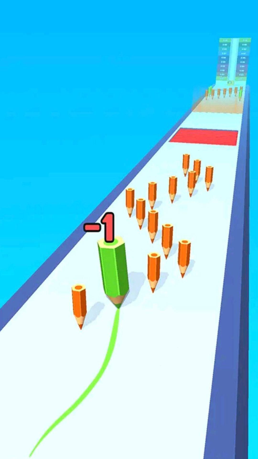 这款游戏将传统跑酷玩法与创意铅笔元素完美结合。玩家需要精准识别场景中的彩色铅笔,收集与自身同色的铅笔来持续增长长度,而误触异色铅笔会导致长度缩减。游戏设计了数十种动态障碍物,包括旋转锯齿、移动平台和变色区域等,考验玩家的即时反应能力。随着铅笔长度的增加,操控难度会呈几何级数上升,玩家必须掌握惯性控制技巧。特别设置的"终极挑战"模式中,终点线前设有巨型粉碎机,只有保持足够长度的铅笔才能将其摧毁并获得三星评价。