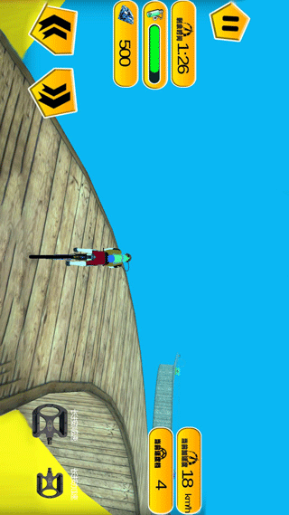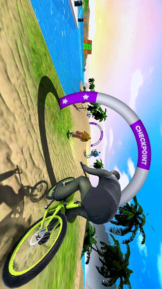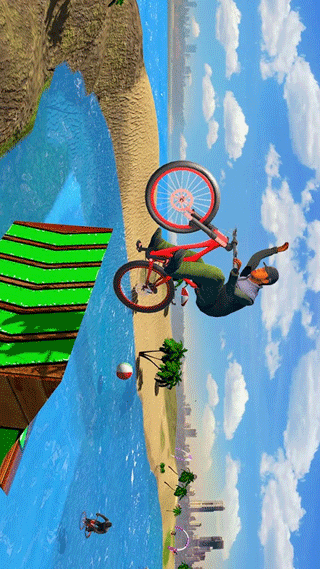 1、在不可能的特技上驾驶你的自行车前进。你必须展示专业的自行车驾驶技巧。游戏提供了丰富的特技动作系统,包括空中翻转、水上漂移等高难度动作。通过组合不同的特技动作可以获得额外分数奖励,但要小心控制平衡,避免落入水中。