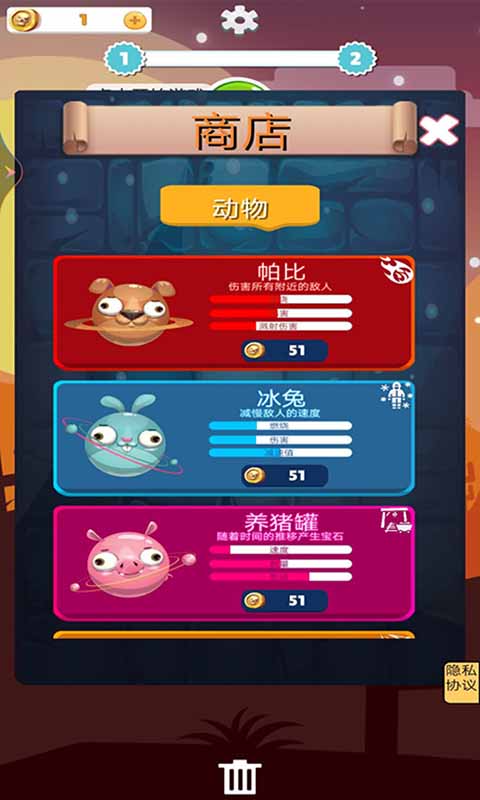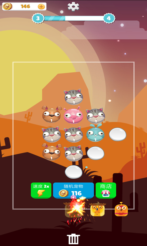 游戏创新性地加入了骰子槽系统,玩家可以用收集到的小动物填满骰子槽来大幅提升攻击力。通过合成两个相同的小动物,可以创造出攻击力更强的超级动物伙伴。游戏中的小鸟敌人会沿着特定路线行进,玩家需要巧妙布局,在它们到达终点前将其全部消灭。