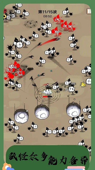 1、游戏中设置了大量风格各异的火柴人敌人,玩家需要运用策略和技巧与他们展开激烈对抗,每场战斗都需要根据敌人特点制定不同的战术。