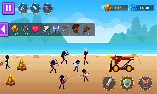 作为新晋指挥官,你将白手起家打造一支所向披靡的军队。游戏初期需要指挥矿工开采珍贵的紫晶矿,这是训练各类兵种的基础资源。随着游戏进程,你可以解锁剑士、弓箭手、巨人等不同特性的兵种,每种单位都有独特的战斗定位。在有限的战场空间内,你需要精确计算每个单位的站位和行动路线。攻陷敌方城堡是最终目标,但通往胜利的道路充满变数。关键时刻释放的指挥官技能往往能改变战局走向,比如瞬间提升全军攻击力或召唤援军支援。游戏还设置了多种天气和地形效果,进一步增加了战斗的策略维度。