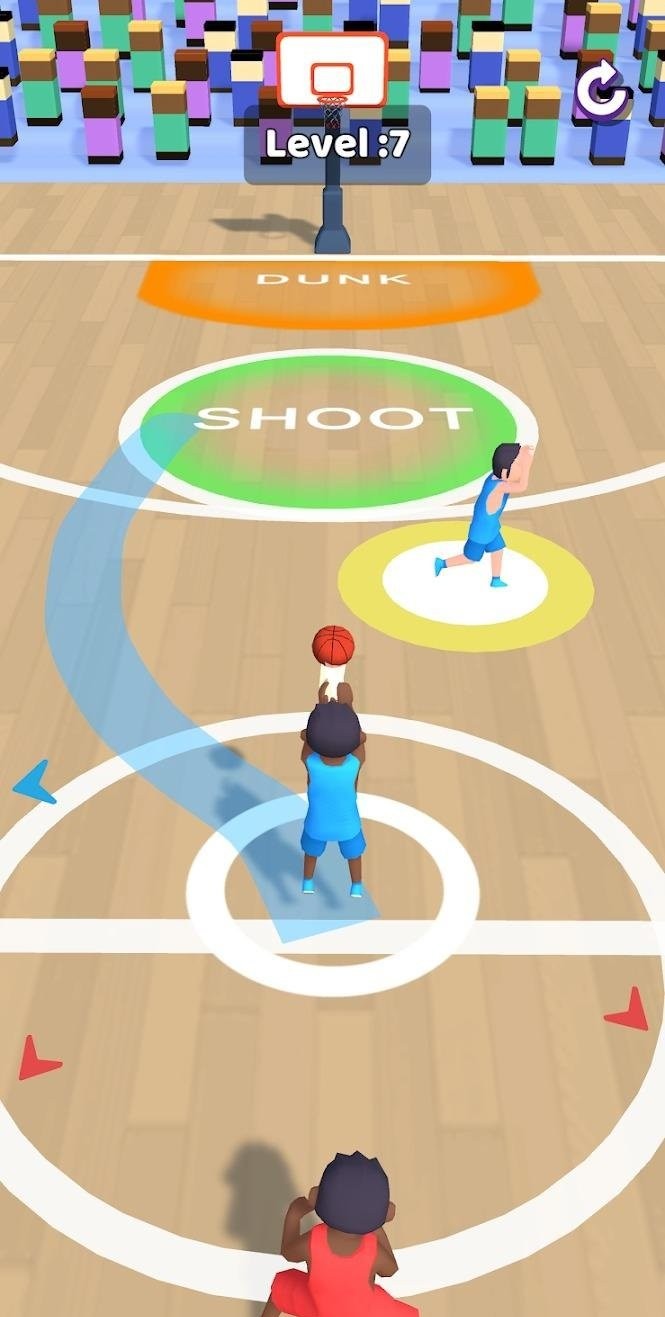 不同的对手会在比赛中对你进行阻拦,运用指尖的灵活操作,提高你的操作能力,绕过所有的对手,进行准确的投篮。游戏采用创新的手势操控系统,通过不同方向的滑动可以完成变向突破、欧洲步等专业动作。防守时玩家需要预判对手动向,适时使用抢断和盖帽。比赛过程中还会触发QTE时刻,完美操作可以打出精彩进球。