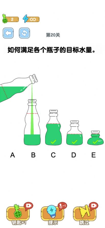把球全部装进瓶子玩家可以在游戏中不断挑战不同级别,这样每个人都可以选择游戏中的各种任务。