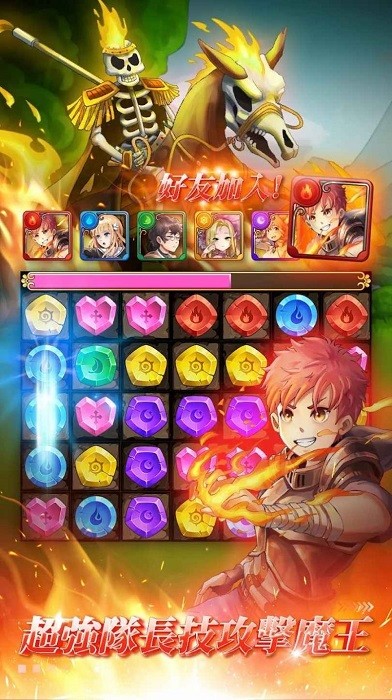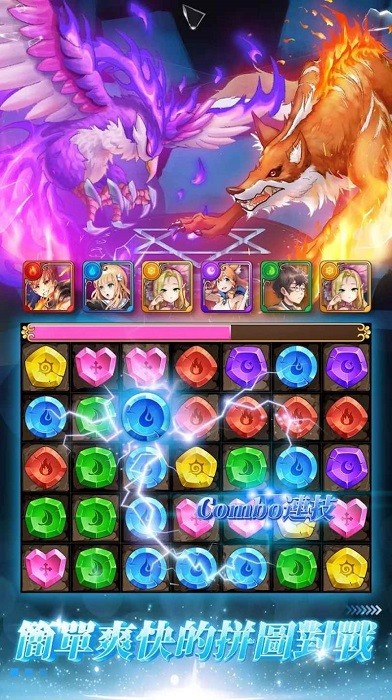 1.战斗系统支持最多5名角色的技能连锁,通过精准的消除操作可以触发华丽的合体必杀技。每个角色都有独特的连携技,需要玩家研究最佳搭配;