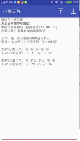 小窝天气使用中国气象局的权威数据源进行天气预报。它是一个标准的天气预报软件,风格简单,美观。