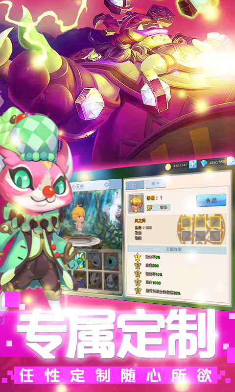 3、萌系战斗体验:Q版角色造型可爱又不失霸气,觉醒转职系统带来全新技能,炫酷连招特效让PK对战更加爽快