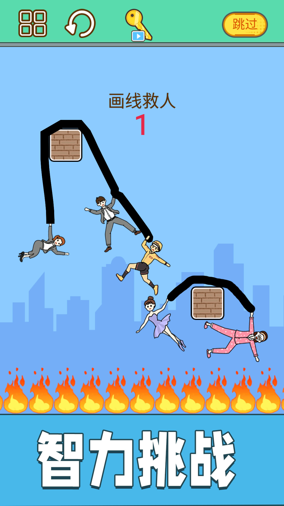 在《拯救小老弟》中,你的任务就是为被困的小老弟绘制一条安全的逃生路线!游戏开始时,你会看到可怜的小老弟被困在高处,下方是危险的火焰陷阱。这时就需要你发挥创意,用手指在屏幕上绘制各种线条和形状,搭建桥梁、铺设轨道、创造弹射装置等,帮助小老弟顺利到达安全区域。游戏提供了丰富的道具系统,包括弹簧、滑轮、传送门等,合理运用这些道具能让你的救援行动事半功倍。记住,每个关卡都有多种解法,就看你的想象力有多丰富!