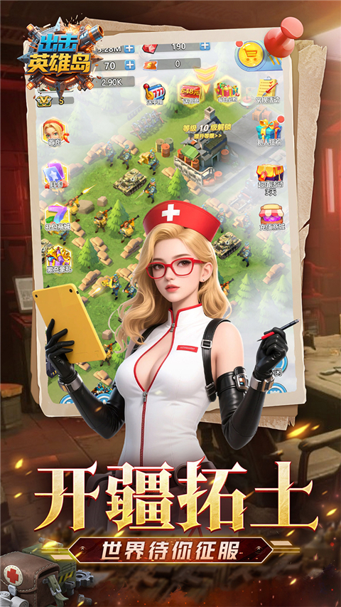 出击英雄岛官方最新版是一款融合了塔防、经营、战争与合成玩法的策略手游,玩家将化身抵抗军领袖,肩负起重建卫城、对抗邪恶军团的重任。游戏以立体化军事对抗为核心,玩家需从零开始打造专属军事堡垒,通过合成升级防御工事、培养多兵种联合作战体系,体验从守城到征服的全方位战争艺术。