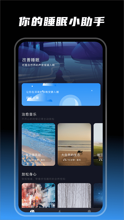 1、睡眠音乐帮你入睡:持续更新的音乐库包含300+专业助眠曲目,每首音乐都经过声学优化,确保最佳的助眠效果。