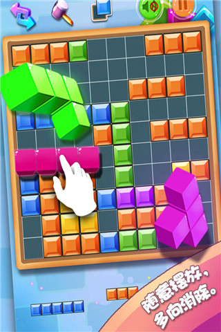 经典的俄罗斯方块玩法升级版,玩家需要拖动方块组合到棋盘中,连成一线即可消除。简单易上手的操作配合丰富的策略性,让玩家欲罢不能,轻松成为方块达人。