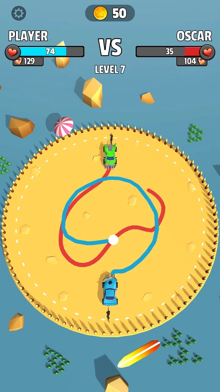 游戏采用直观的触控操作,玩家需要在限定时间内绘制出最佳行驶路线。当对手的汽车被成功摧毁时,你将进入全新的3D竞技舞台。游戏考验玩家的快速反应能力和空间判断力,需要精准计算撞击角度和力度。随着游戏深入,你将解锁更多特殊车辆,每辆车都有独特的破坏方式。每次战斗胜利后都能获得游戏货币奖励,这些资源可以用来升级现有车辆或解锁更强大的新车。游戏还设有每日挑战和特殊活动,确保玩家始终保持新鲜感。