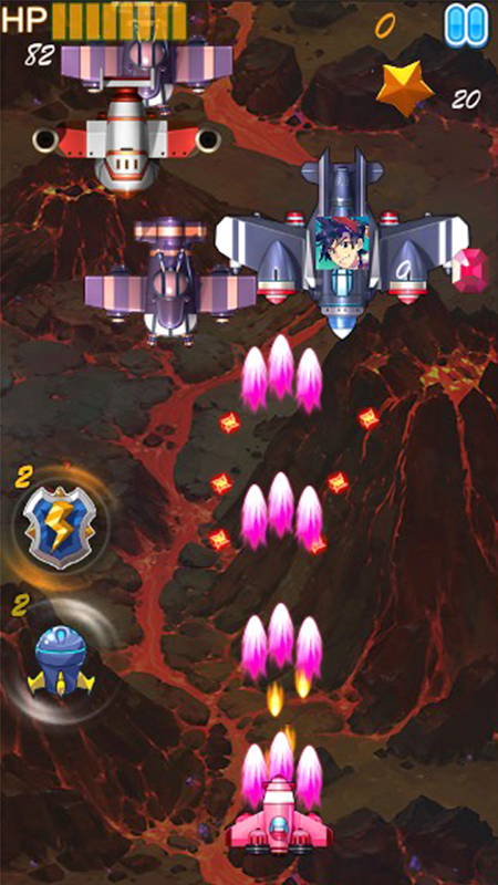 2、超过50种可收集战机各具特色,从经典螺旋桨飞机到未来科幻战舰,每款都拥有专属弹道特效和必杀技。