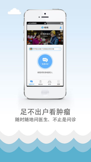3.足不出户看肿瘤,免费咨询:7×24小时在线咨询服务,由专业医生团队提供权威解答,解决患者在治疗过程中的各种疑问。