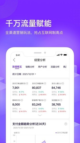 全链路可视化,物流、订单流、资金流全链路可视,一体化服务管理,轻松无忧做好生意,流量、交易、客户行为等核心数据一手掌握,实时分析经营数据,高效优化运营效果。平台的数据驾驶舱功能可以自定义关键指标看板,支持多维度数据钻取分析。AI预警系统会主动提示异常数据,帮助商家及时发现经营问题。我们还提供行业对标数据,让您了解自己在同类商家中的表现。