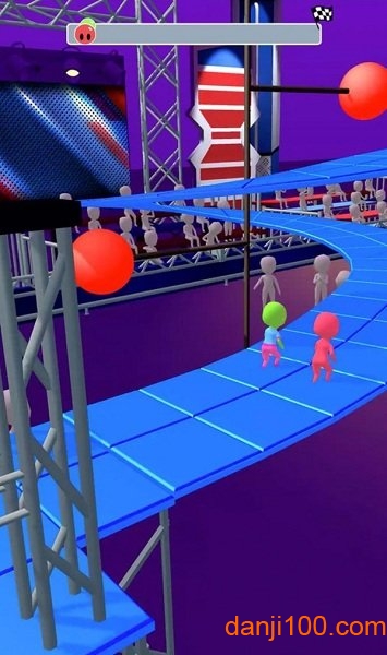 1、场地中会有很多的障碍物,他们会给你很大的阻碍,所以你必须控制的很好。游戏中的障碍设计极具创意,从旋转的锤子到突然出现的路障,每个都考验着玩家的反应能力。