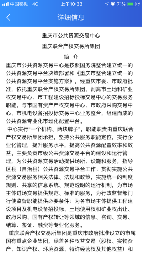 作为市级公共资源交易的综合服务平台,重庆公共资源app承担着多项重要职能:为政府部门提供交易综合管理、行政监管和监察审计的公共服务;负责全市公共资源交易平台的建设、管理和维护工作;提供专业的交易场所和设施服务;建设和维护全市综合专家库和信息库;收集、发布和存储各类公共资源交易信息;协助制定公共资源交易管理制度、交易规则和交易目录。具体服务内容包括建设项目招投标、市级矿业权交易、国有产权交易,以及全市公立医疗机构药品、医用耗材集中采购等专业领域。